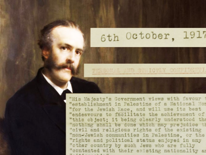 ولذلك، حين نجحت بريطانيا في الحرب العالمية الأولى من هزيمة الوجود العثماني في البلاد والذي امتد لمئات السنين، سارع الدكتور حاييم وايزمان في تموز 1917 بتقديم مسودة إعلان للحكومة البريطانية والذي تعترف بموجبه بفلسطين كأرضٍ للشعب اليهودي، وتعترف في حقه بإقامة دولة يهودية فيها.