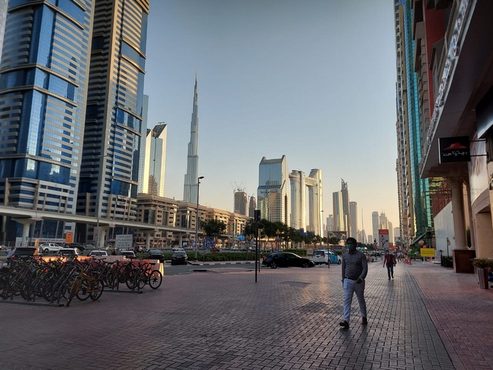 The streets of Dubai, with the Burj Khalifa skyscraper, the world's tallest building, in the background; photo by Katie Wachsberger