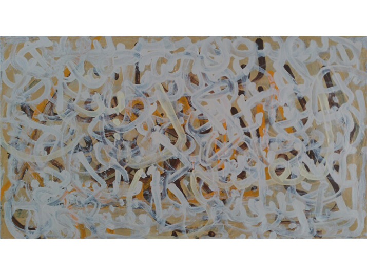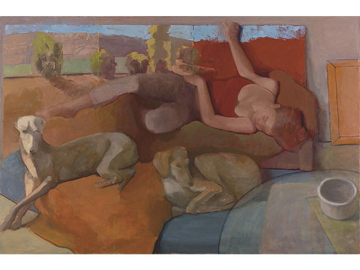 בשער: מיכל גולדמן, מסך שחור, מתוך הסדרה ״יו טיוב והשולחן הכחול״, טמפרה שעווה על פשתן, 110X82 ס"מ, 2013.